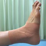 損傷筋の補助、関節を固定しケガの予防、患部の安静を行います。