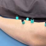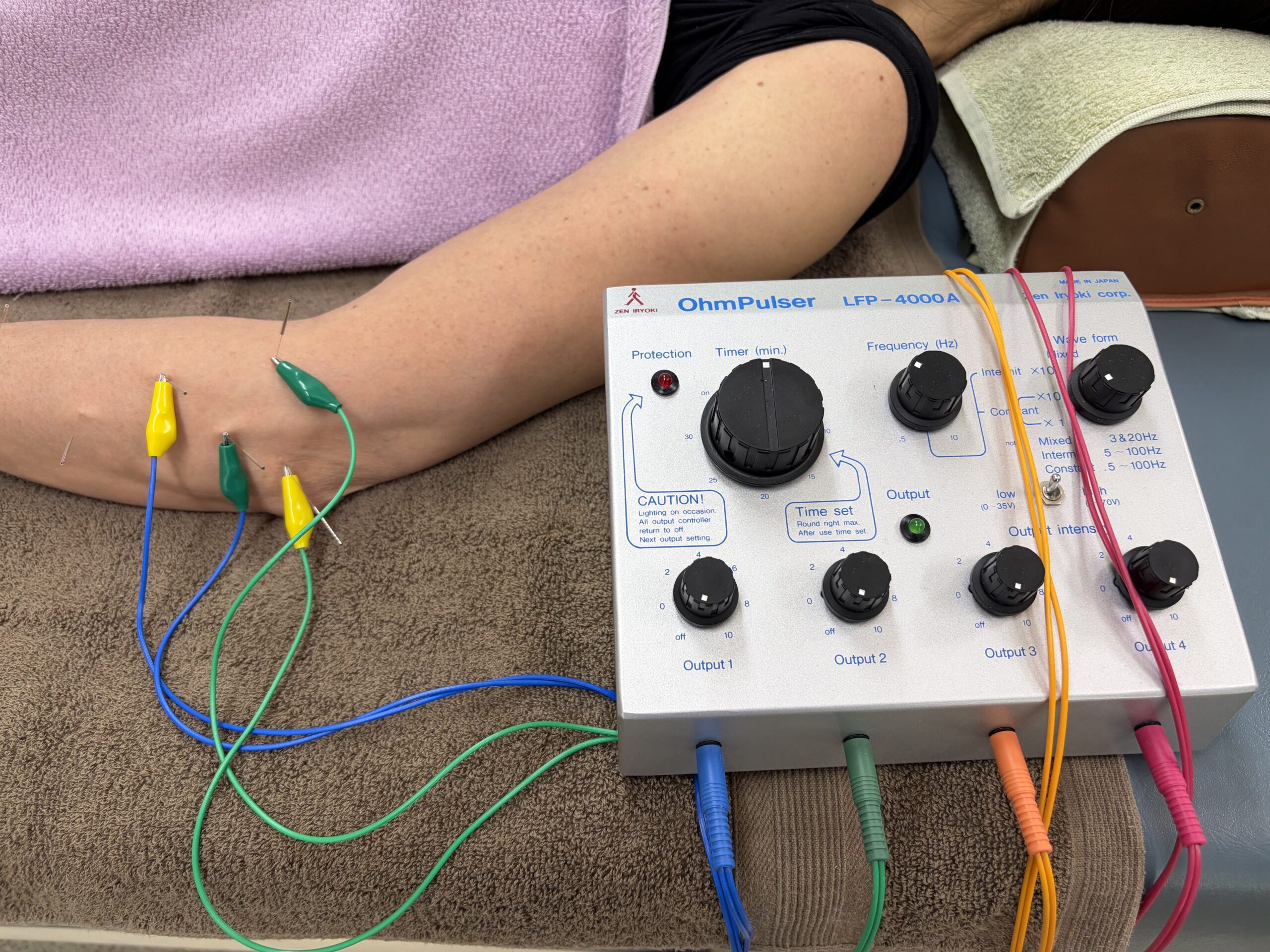 電気鍼と呼ばれ、電極を筋肉に置き低周波電流を流します。